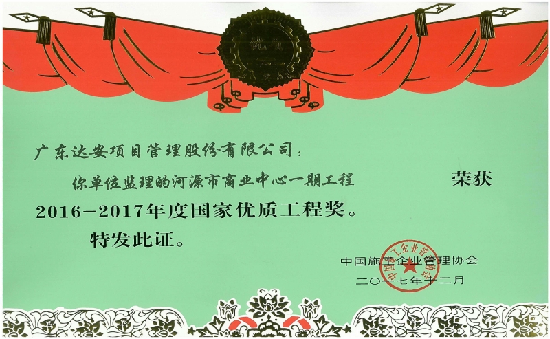 國(guó)家優(yōu)質(zhì)工程獎(jiǎng)-河源市商業(yè)中心一期工程