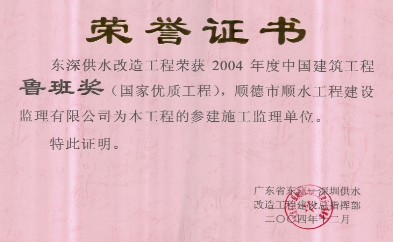 中國(guó)建筑工程魯班獎(jiǎng)(國(guó)家優(yōu)質(zhì)工程獎(jiǎng))-東深供水改造工程