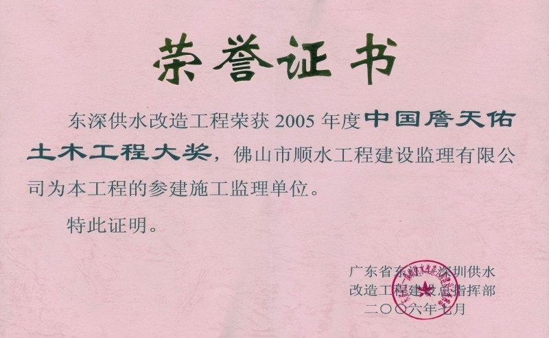 中國(guó)詹天佑土木工程大獎(jiǎng)-東深供水改造工程