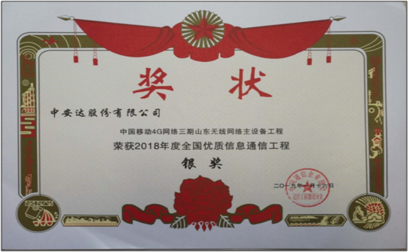 全國(guó)優(yōu)質(zhì)信息通信工程銀獎(jiǎng)-中國(guó)移動(dòng)4G網(wǎng)絡(luò)三期山東無(wú)線網(wǎng)絡(luò)主設(shè)備工程