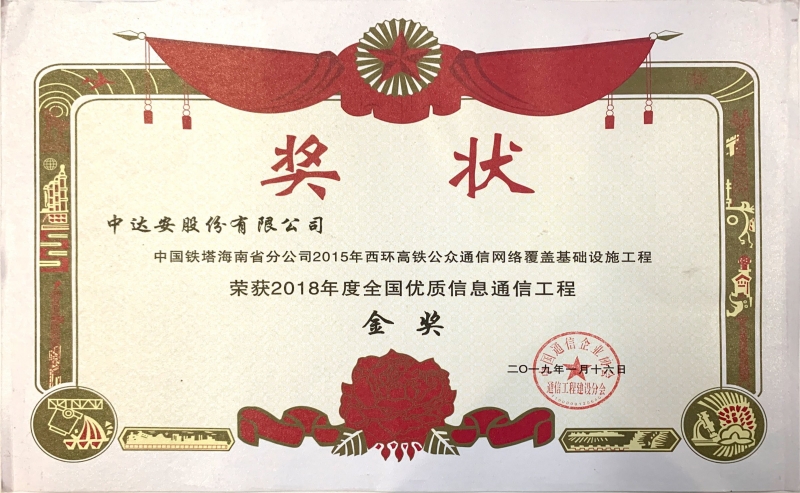 全國(guó)優(yōu)質(zhì)信息通信工程金獎(jiǎng)-中國(guó)鐵塔海南省分公司2015年西環(huán)高鐵公眾通信網(wǎng)絡(luò)覆蓋基礎(chǔ)設(shè)施工程