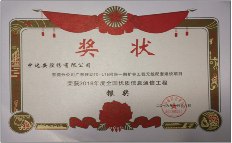全國(guó)優(yōu)質(zhì)信息通信工程銀獎(jiǎng)-東莞分公司廣東移動(dòng)TD-LTE網(wǎng)絡(luò)一期擴(kuò)容工程無(wú)線配套建設(shè)項(xiàng)目