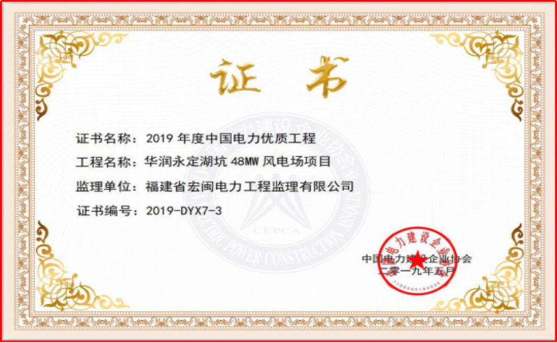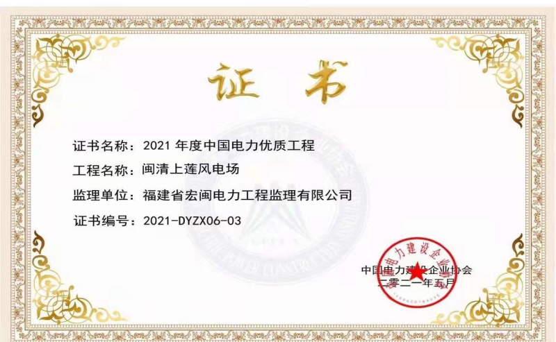 中國(guó)電力優(yōu)質(zhì)工程-閩清上蓮風(fēng)電場(chǎng)