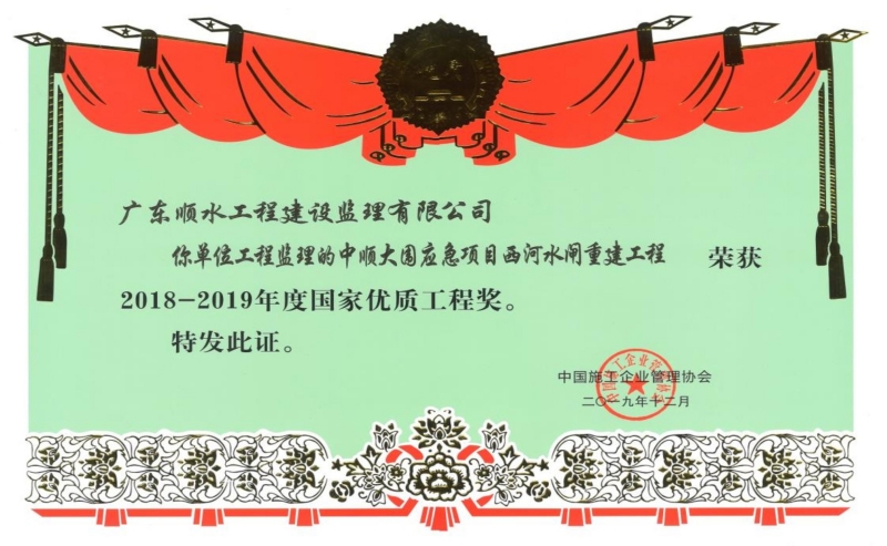 國(guó)家優(yōu)質(zhì)工程獎(jiǎng)-中順大圍應(yīng)急項(xiàng)目西河水閘重建工程