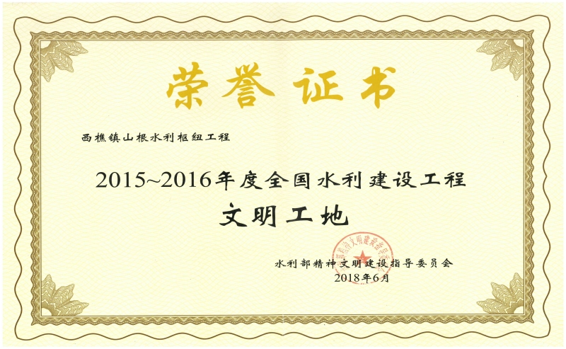 全國(guó)水利建設(shè)工程文明工地-西樵鎮(zhèn)山根水利樞紐工程