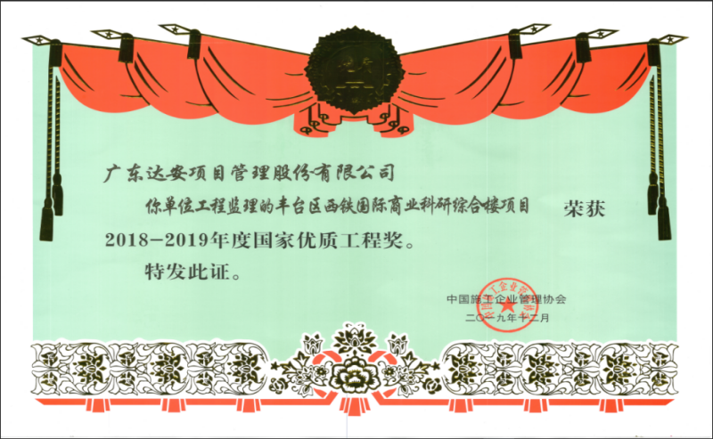 國(guó)家優(yōu)質(zhì)工程獎(jiǎng)-豐臺(tái)區(qū)西鐵國(guó)際商業(yè)科研綜合樓項(xiàng)目