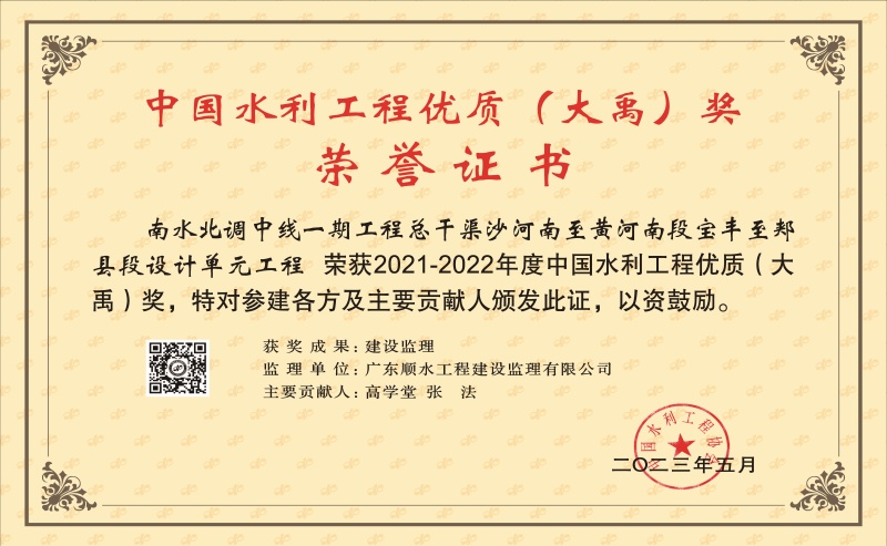 中國(guó)水利工程優(yōu)質(zhì)(大禹)獎(jiǎng)-南水北調(diào)中線一期工程總干渠沙河南至黃河南段寶豐至郟縣段設(shè)計(jì)單元工程