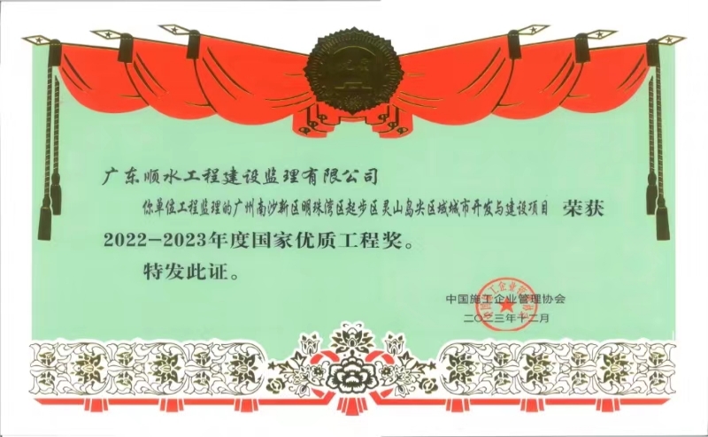 國(guó)家優(yōu)質(zhì)工程獎(jiǎng)-廣州南沙新區(qū)明珠灣區(qū)起步區(qū)靈山島尖區(qū)域城市開發(fā)與建設(shè)項(xiàng)目